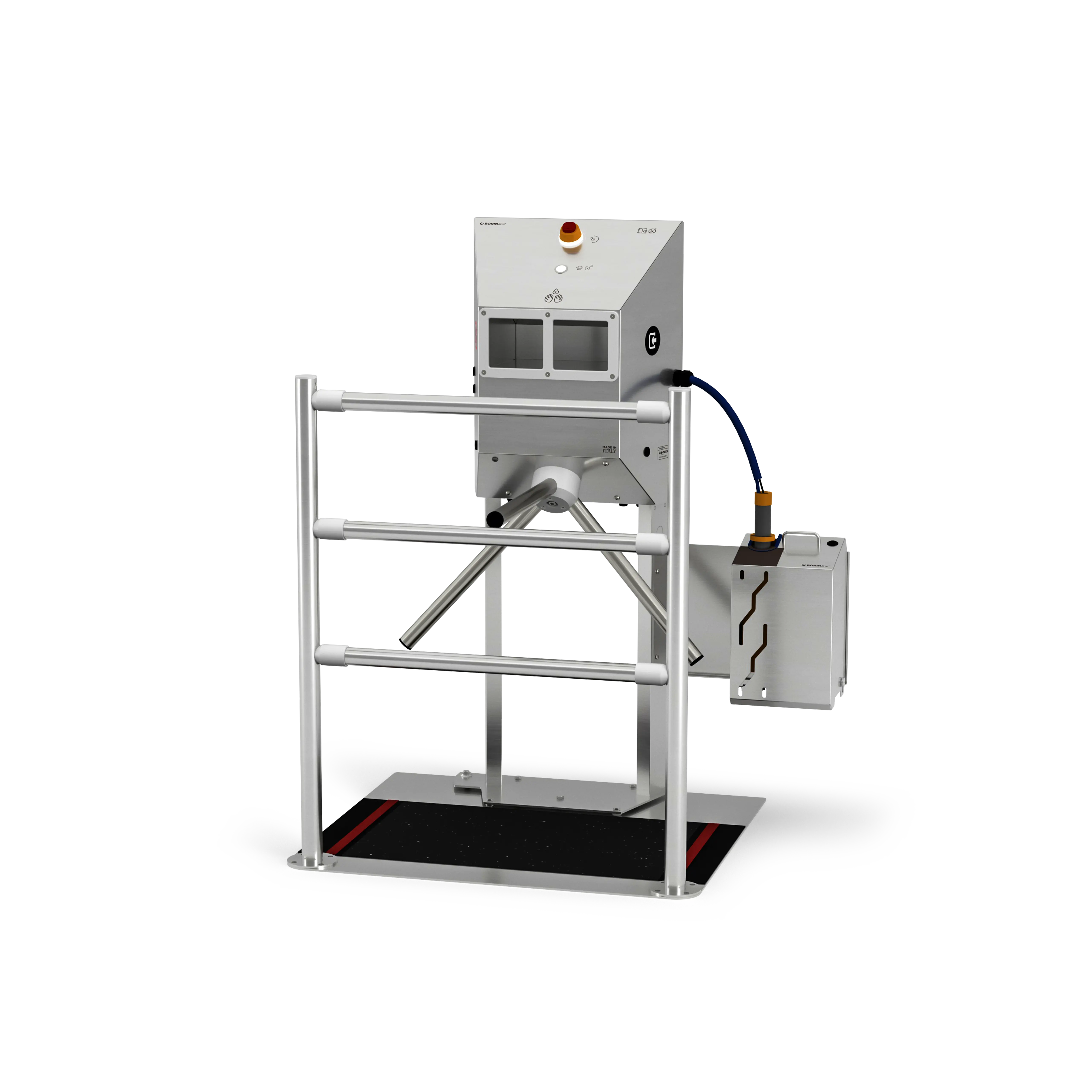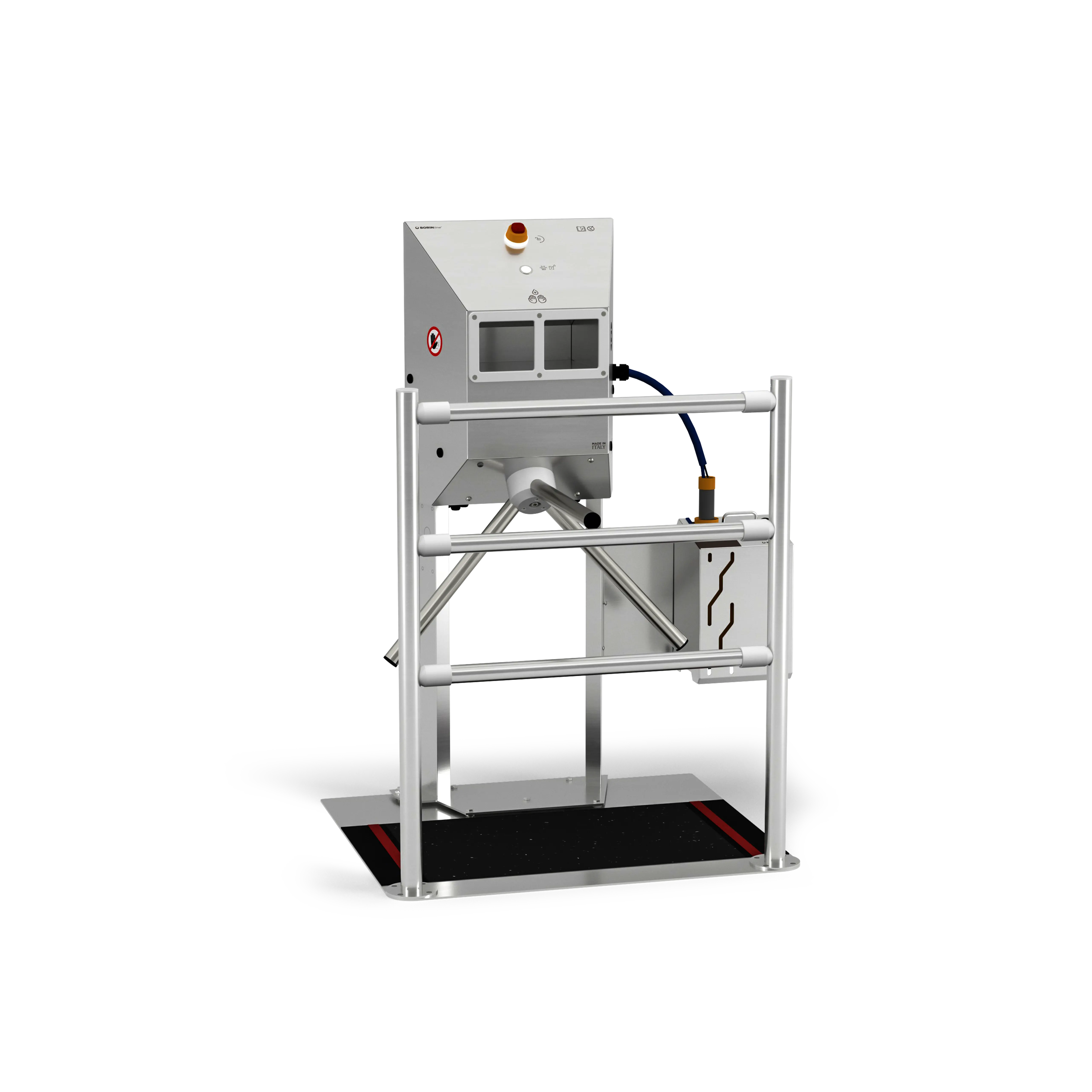 Stazione di sanificazione delle mani e delle suole con controllo accessi: certifica la saponatura delle mani degli operatori, integrando la disinfezione a secco delle suole in ingresso e in uscita dalle aree di lavoro. La procedura è automatica e guidata: saponatura delle mani con rilascio automatico di sapone disinfettante e disinfezione delle suole durante tutto il percorso tramite tappeto Silver. Il tornello si sblocca solo al termine della procedura; in caso di mancanza di corrente, rimane sbloccato consentendo il passaggio.