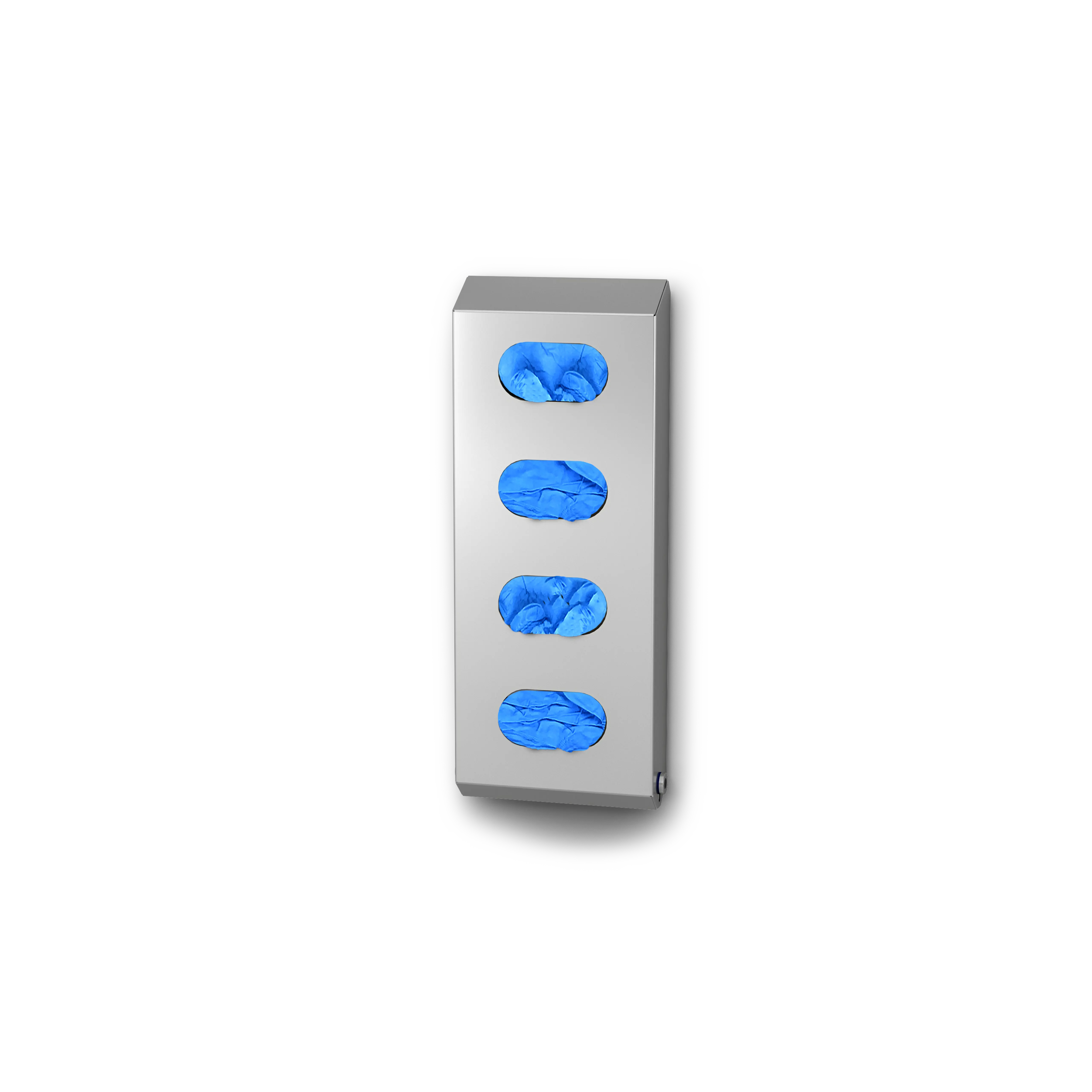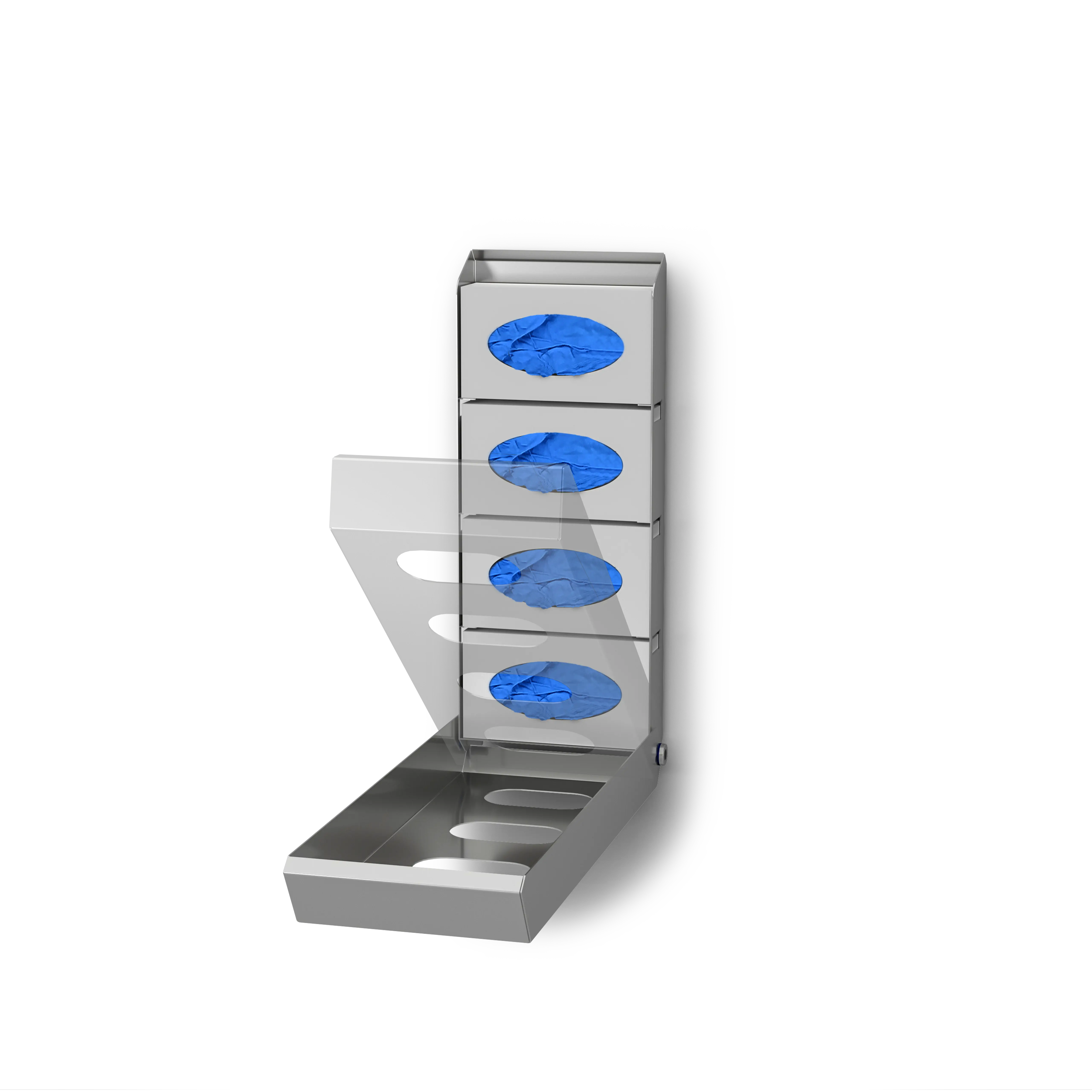 Dispenser a parete per 4 scatole di guanti monouso, progettato per rendere il DPI sempre disponibile e mantenere la postazione ordinata anche quando serve una dotazione più ampia. La struttura in acciaio inox AISI 304L è indicata per ambienti con procedure di sanificazione ricorrenti e requisiti igienici elevati, grazie a superfici resistenti e facilmente pulibili. Il tetto spiovente e il distanziamento dalla parete supportano una gestione più pulita anche nelle zone operative.