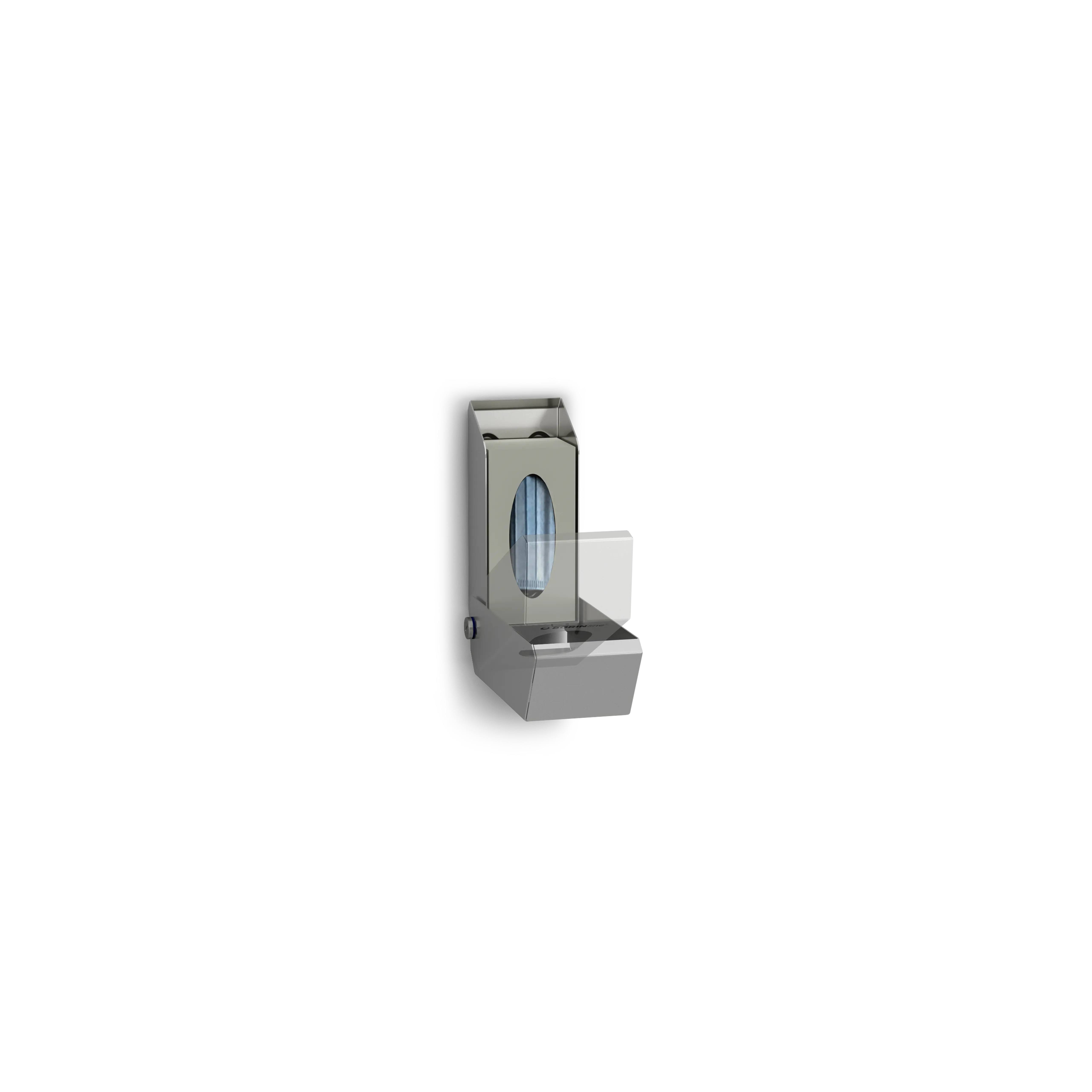 Il telaio punzonato distanzia il dispenser dalla parete retrostante, evitando ristagni di cariche batteriche e facilitando la sanificazione anche nella zona posteriore.
