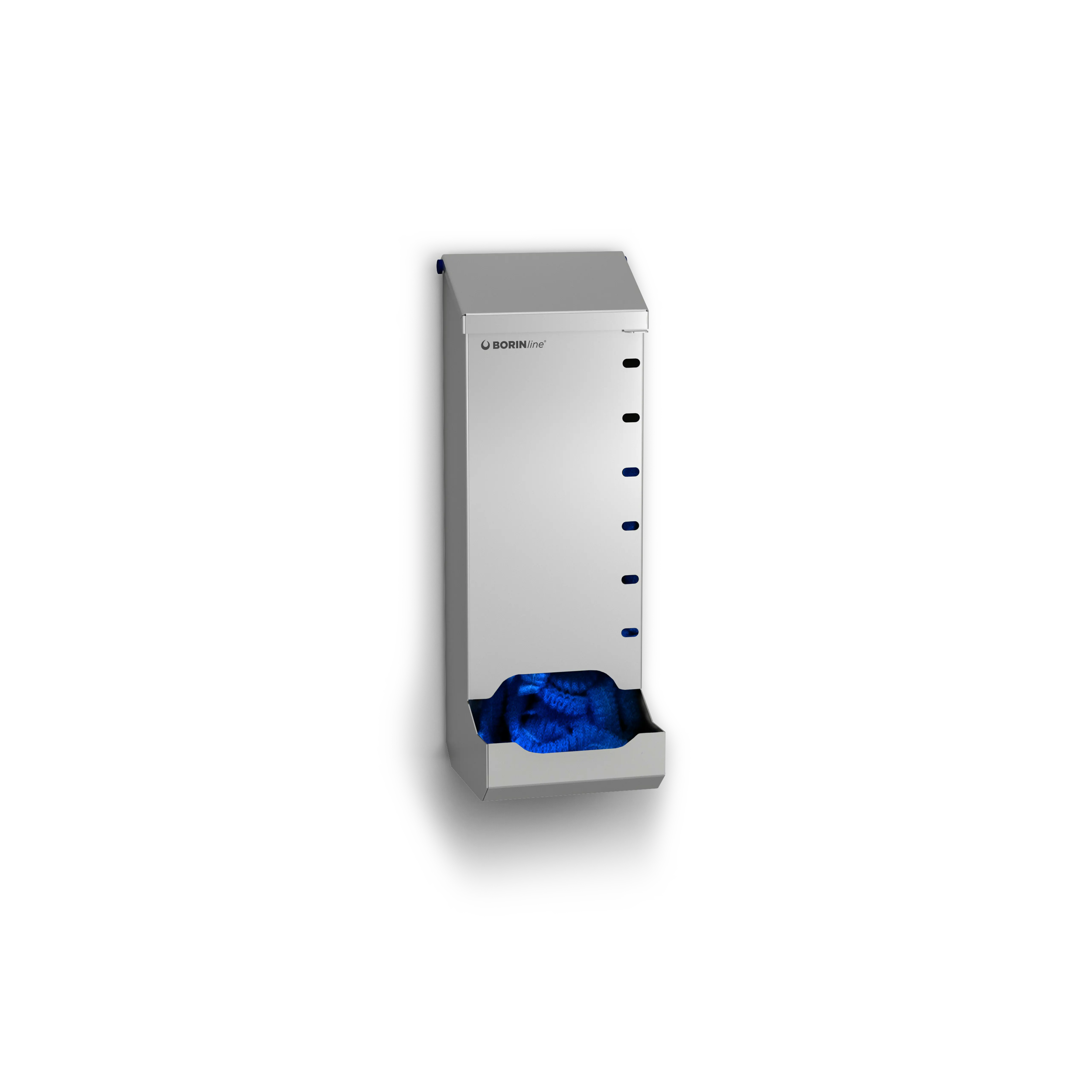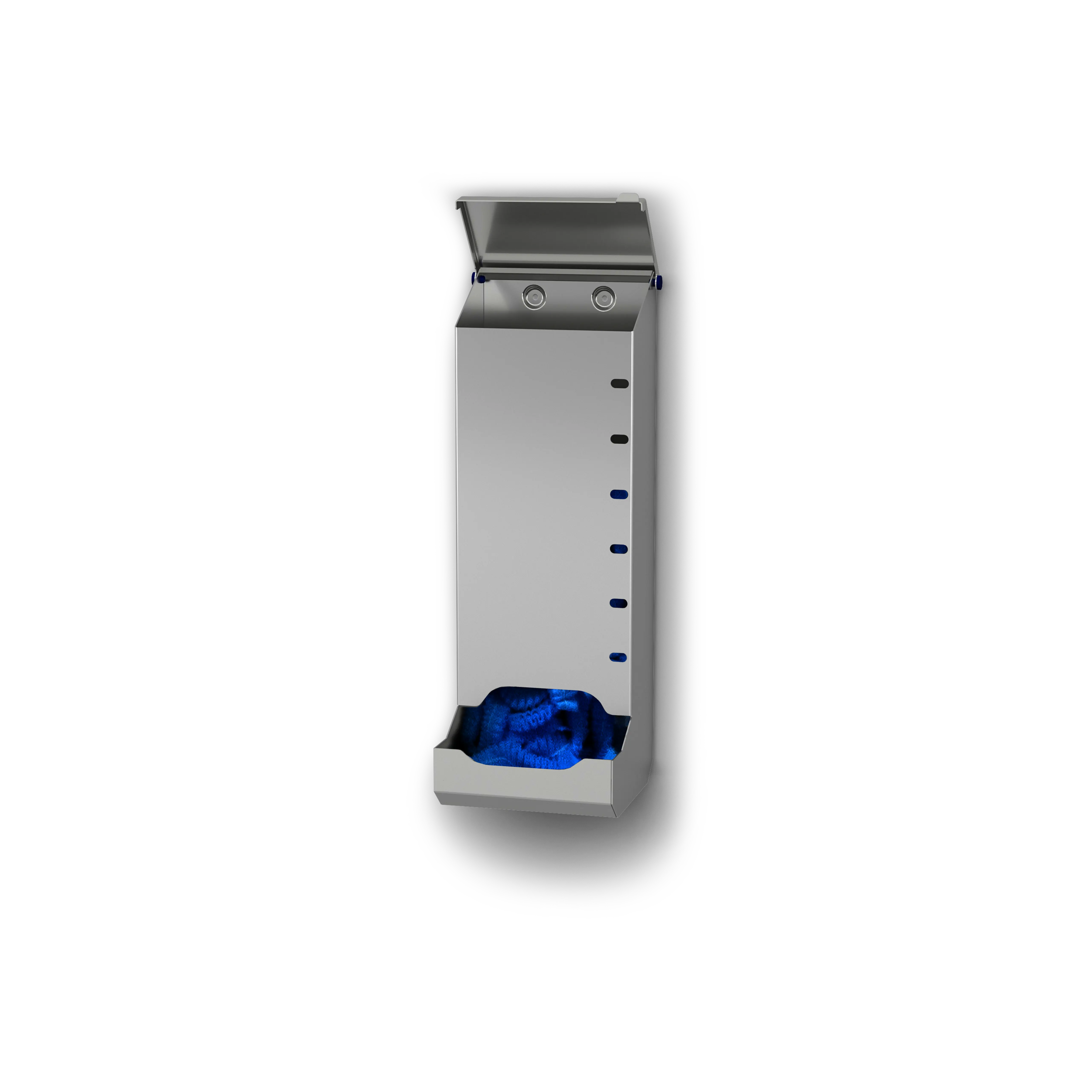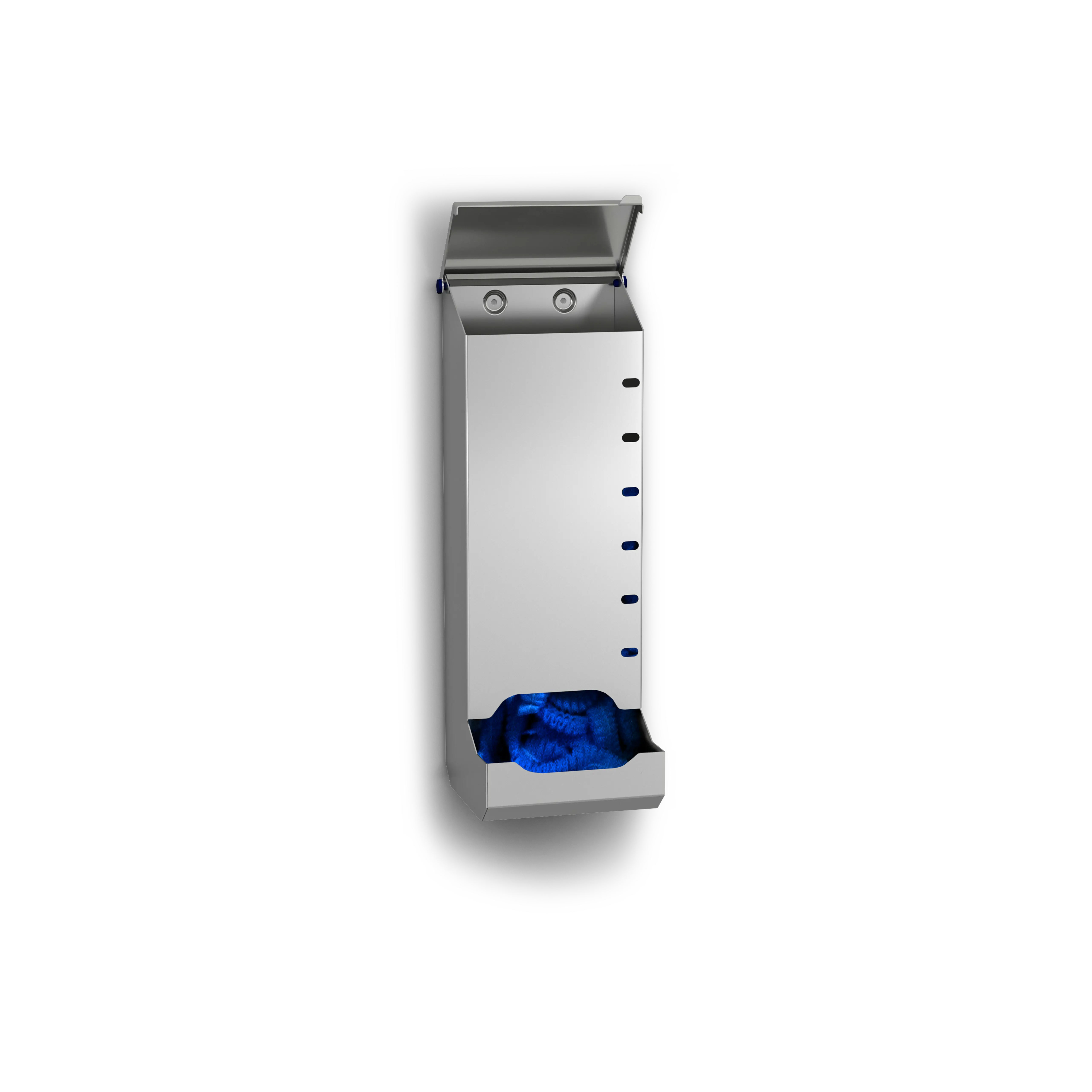 Dispenser a parete multifunzione per DPI e dispositivi monouso, progettato per mantenere la zona di vestizione ordinata e garantire disponibilità costante del materiale. È adatto, ad esempio, per cuffie e copriscarpe monouso, oltre ad altri DPI leggeri da vestizione. La vaschetta di prelievo guida un’estrazione più controllata, mentre il coperchio a battente rende la ricarica rapida e sicura. La struttura in acciaio inox AISI 304L è indicata per contesti con sanificazioni frequenti e procedure operative rigorose, incluse aree produttive ad alto rischio di contaminazione batterica, dove l’igiene operativa è un requisito essenziale.