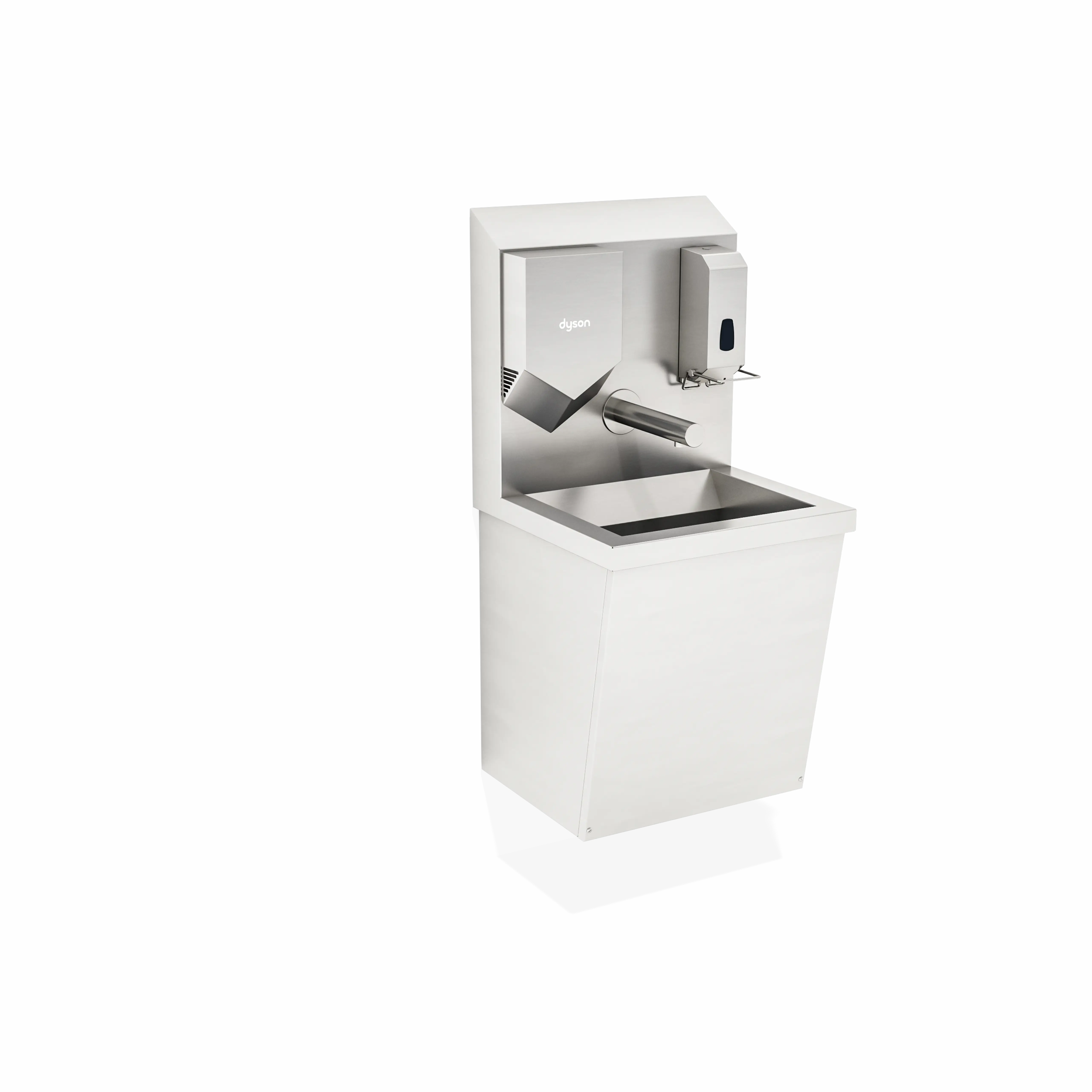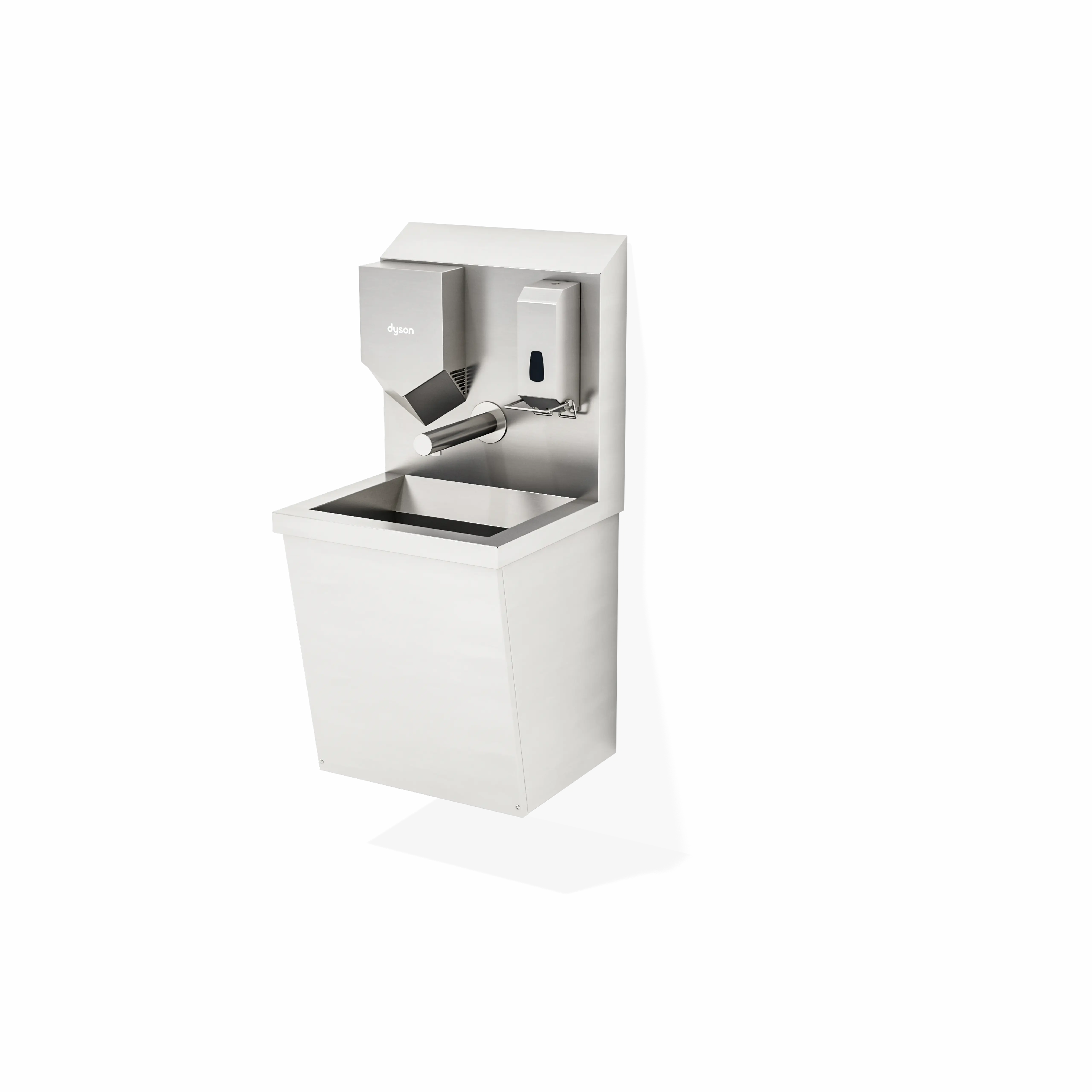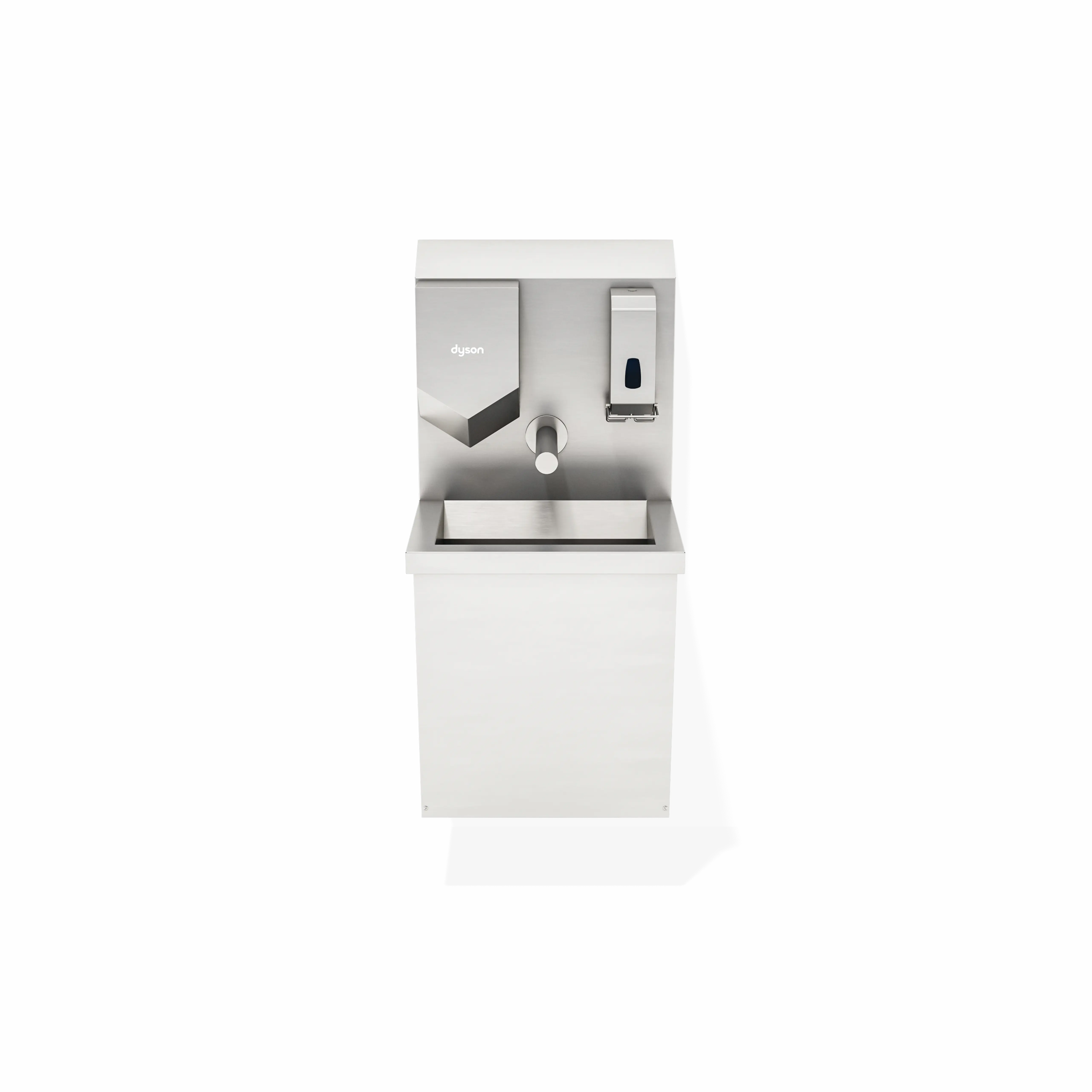 Lavandino carterizzato pensile a una postazione, progettato per ridurre la proliferazione batterica e semplificare la gestione della postazione. Il rubinetto a fotocellula gestisce l’erogazione senza contatto e Dyson Airblade V completa l’asciugatura con un flusso rapido e ordinato. È indicato anche per aree produttive ad alto rischio di contaminazione batterica, dove l’igiene operativa è un requisito essenziale.