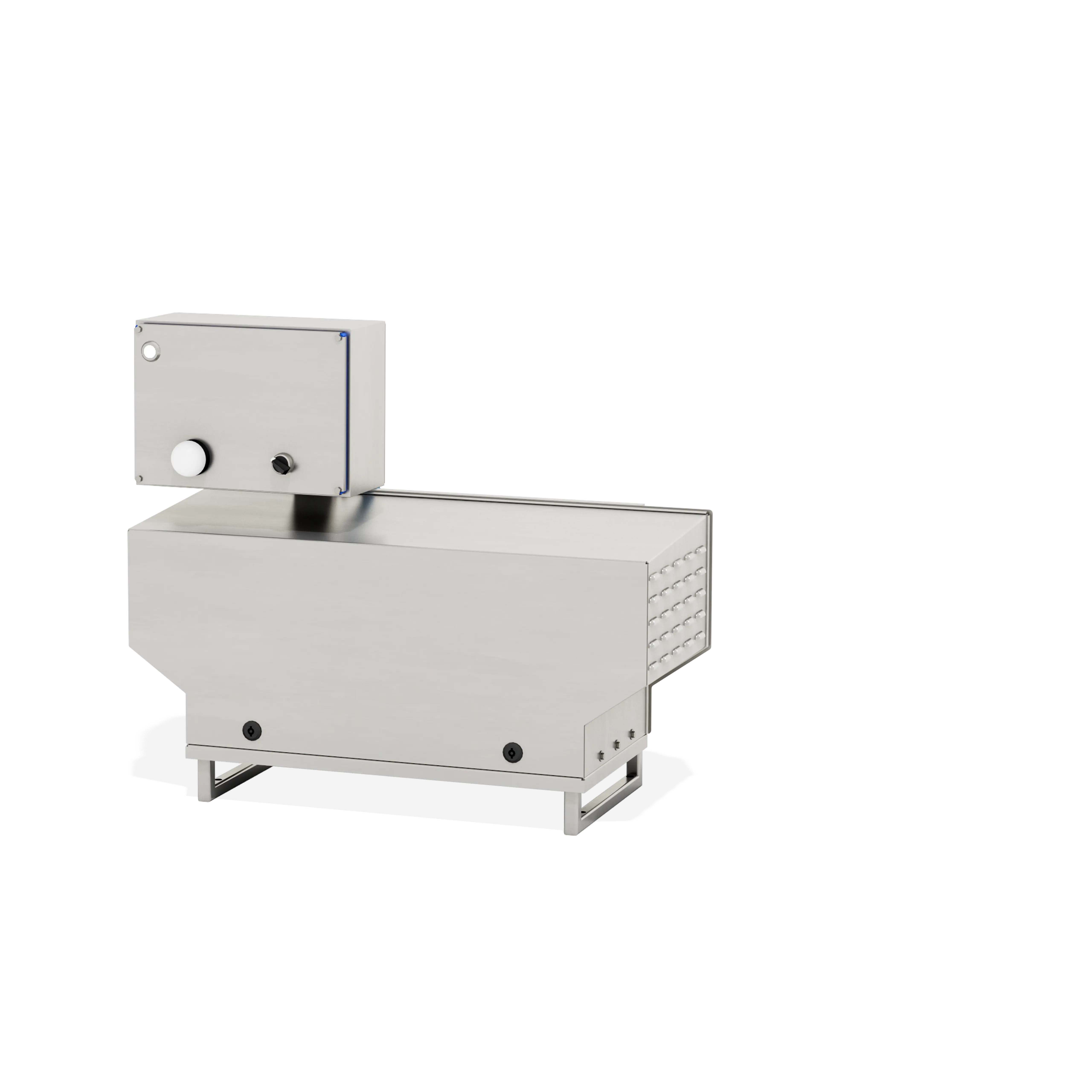 Pompa e motore sono alloggiati all’interno di un carter di protezione in acciaio inox, fissato con serrature per garantire sicurezza e consentire un accesso semplice ai componenti durante la manutenzione.